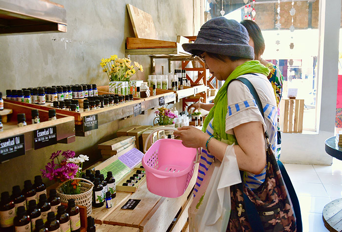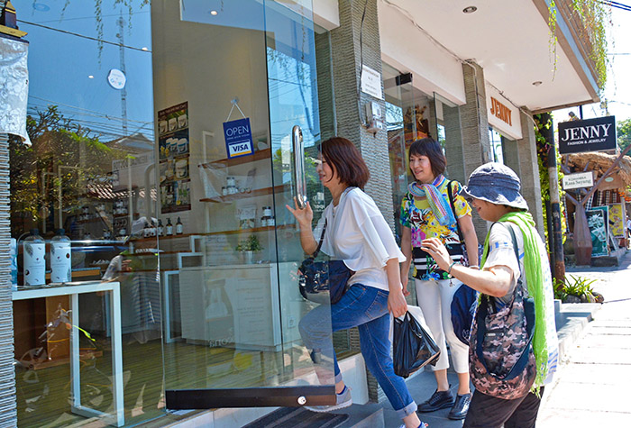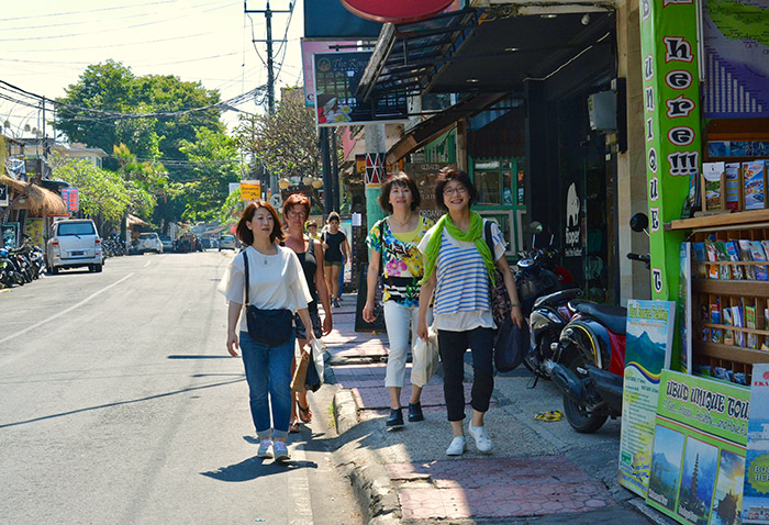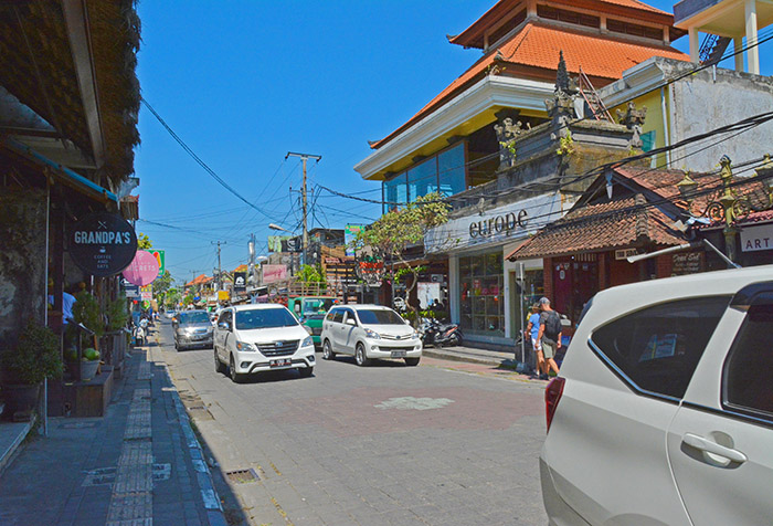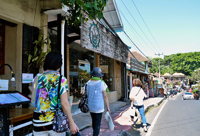 約1時間のフリータイムは、お目当ての「ウタマスパイス」と「ココナ」があるモンキーフォレスト通りを散策することに。この通りはウブド市街地のメインストリートです。