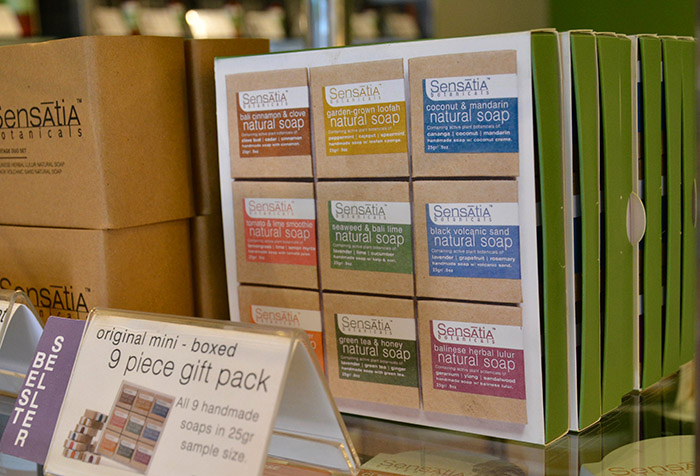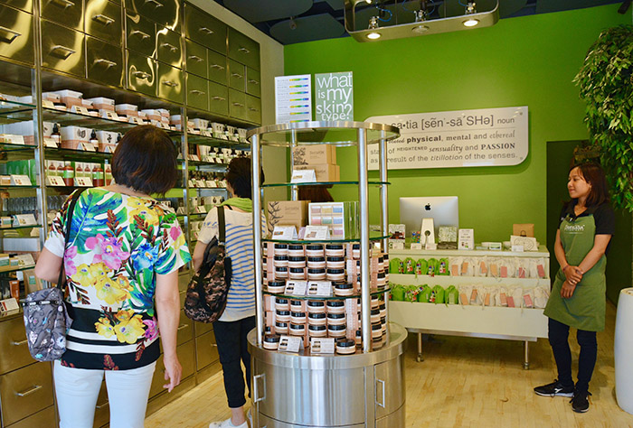 歩き出してすぐの右手に「センセイシャ」を発見!自然派コスメはやっぱり女性に人気ですね。