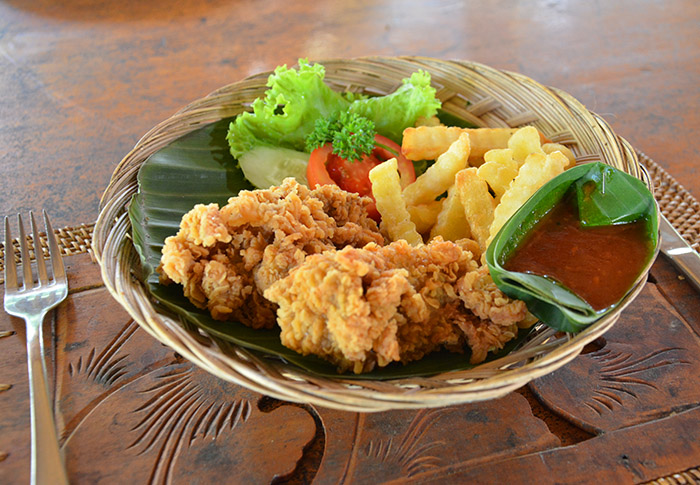 料理は、シーフードかインドネシア料理かどちらかを選ぶことができます。