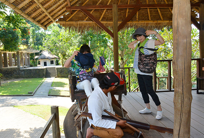 ランチの後はお楽しみのエレファントライド! 背の高い象に乗るために専用の発着所で乗降します。