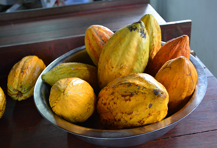 ↓こちらがカカオの実。初めて見る人も多いのでは?バリ島には実はカカオの木がいっぱいあるんですよ。ここではバリ産のカカオを原料に作られています。