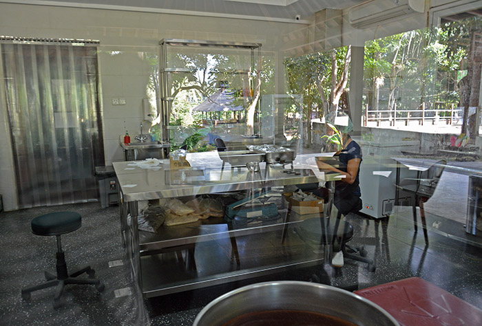 エレファントライドの後は、同じエレファントキャンプ内にあるチョコレートファクトリー「pod」の見学。