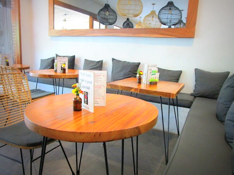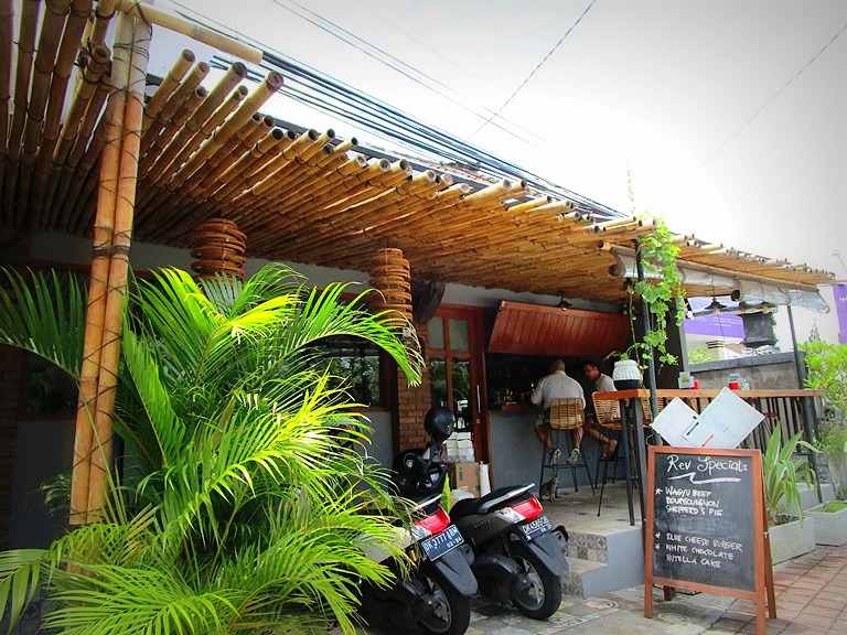 場所は、スミニャック。サンセットロードをクタからスミニャックへ向かい、クンティ通りを右へ。角にガソリンスタンドがあって左へ行くとバリデリやプラナスパ。右に曲がって一つ目の角を右へ。すると看板が目に入ります。