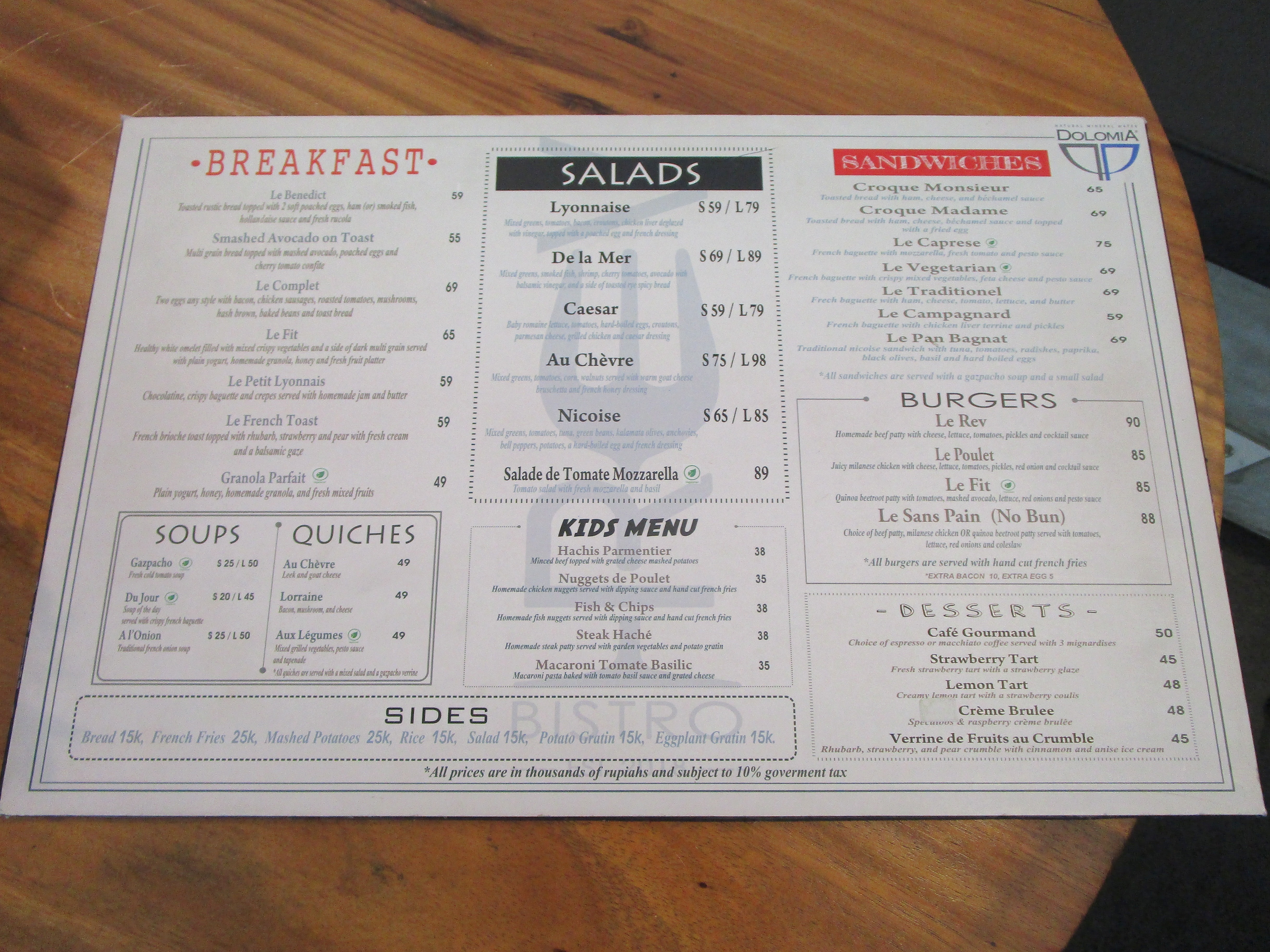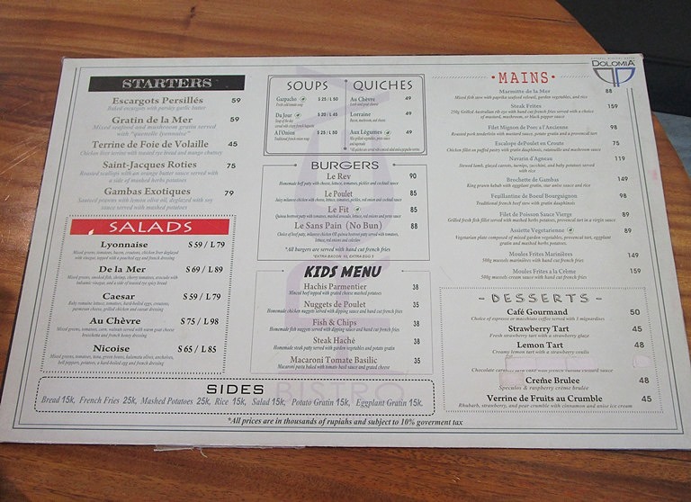 ランチとディナーのメニュー。