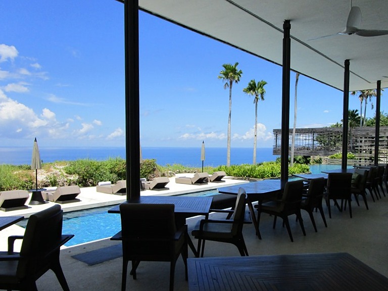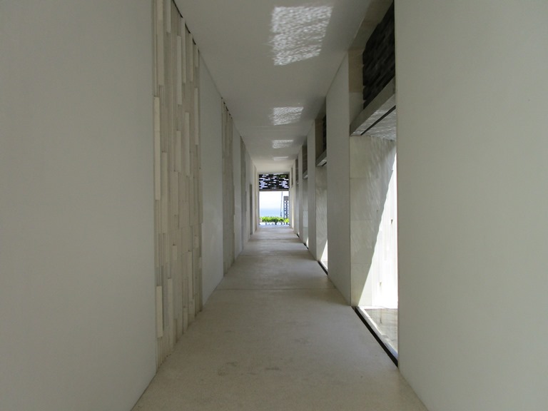 ウルワツの方って大通りは変わりないけど、海側崖側に向かって一本入っていくと南部のクタやサヌール、ヌサドゥアとは気候が違う、緑々の熱帯雨林ではなく白樺のような!?…乾いた土地にここだけで目にする木々…アリラヴィラズウルワツ(ウルワツ以外もアリラ全般ですが)は環境維持デザインの原則を元に考えられたものということでした。地元産の材料を使う事、雨水を使った水資源の保護や、下水処理システム、バリのサバンナの生態系植物を植える事、リサイクル素材もしくは持続可能な原料の素材を使用する事、自然環境を保護する事、この根本がこのリゾートの空気を成していたのでした。到着した瞬間からその革新的なアリラスタイルの空間に足を踏み入れればまるで別世界に来たかのように錯覚するでしょう。内から外へ切れ目なく見事にこの土地に溶け込んだデザイン、インド洋、崖、青、空…そこに見えるものをより一層ドラマチックに見せる力。そして美しいユニフォームを身にまとったスタッフのエレガントな振る舞いは、夢のような旅時間を過ごさせてくれたのです。日々この素晴らしいホテルを目にして働いていたら自然と誇りと自信がついてくるのでしょう。いつもホテルに到着する時はどんなホテルなのだろうと不安にもなるのですが、到着した時に担当してくれた女性スタッフ、マデさんが、それを消し去ってくれ、チェックアウトしてホテルを去る時に担当してくれた女性スタッフ、アユさんに見送ってもらった時は後ろ髪をひかれる思いでした。
