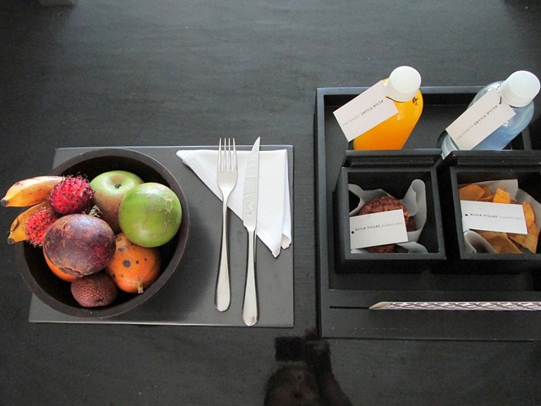 ウエルカムフルーツ、スナック。到着してこんなに粋にセッティングしてくれていたら感激するね。
