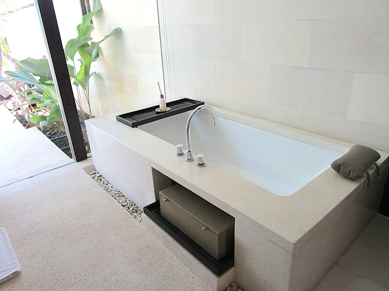 セーフティボックス、ビーチバック、バスローブ、スリッパ、、快適に滞在出来るものは勿論揃っています。また、ホテルの基本サービス=アリラ・ホスピタリティは、リゾート内での無料Wifi、モーニングヨガへの参加、ジムの利用、お部屋のアメニティもサンブロックや様々な種類が揃えられていて嬉しい限り。コンテンポラリーなインテリアに天然木材や水、石、ラタン等バリらしさがアクセントになった素敵なヴィラでしょう。