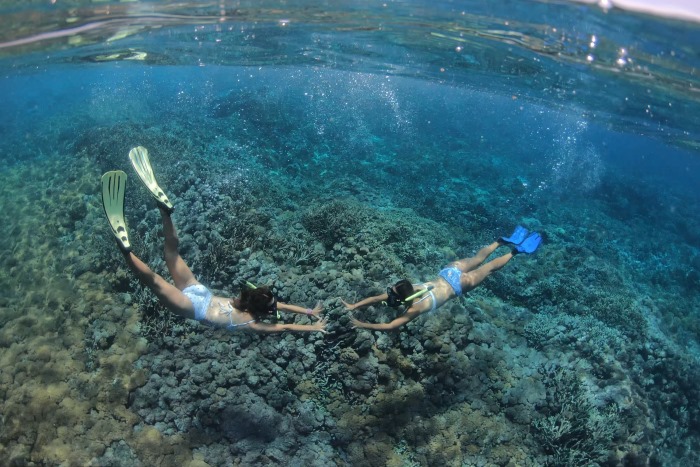 海中には美しい珊瑚やカラフルな熱帯魚がいっぱいです。