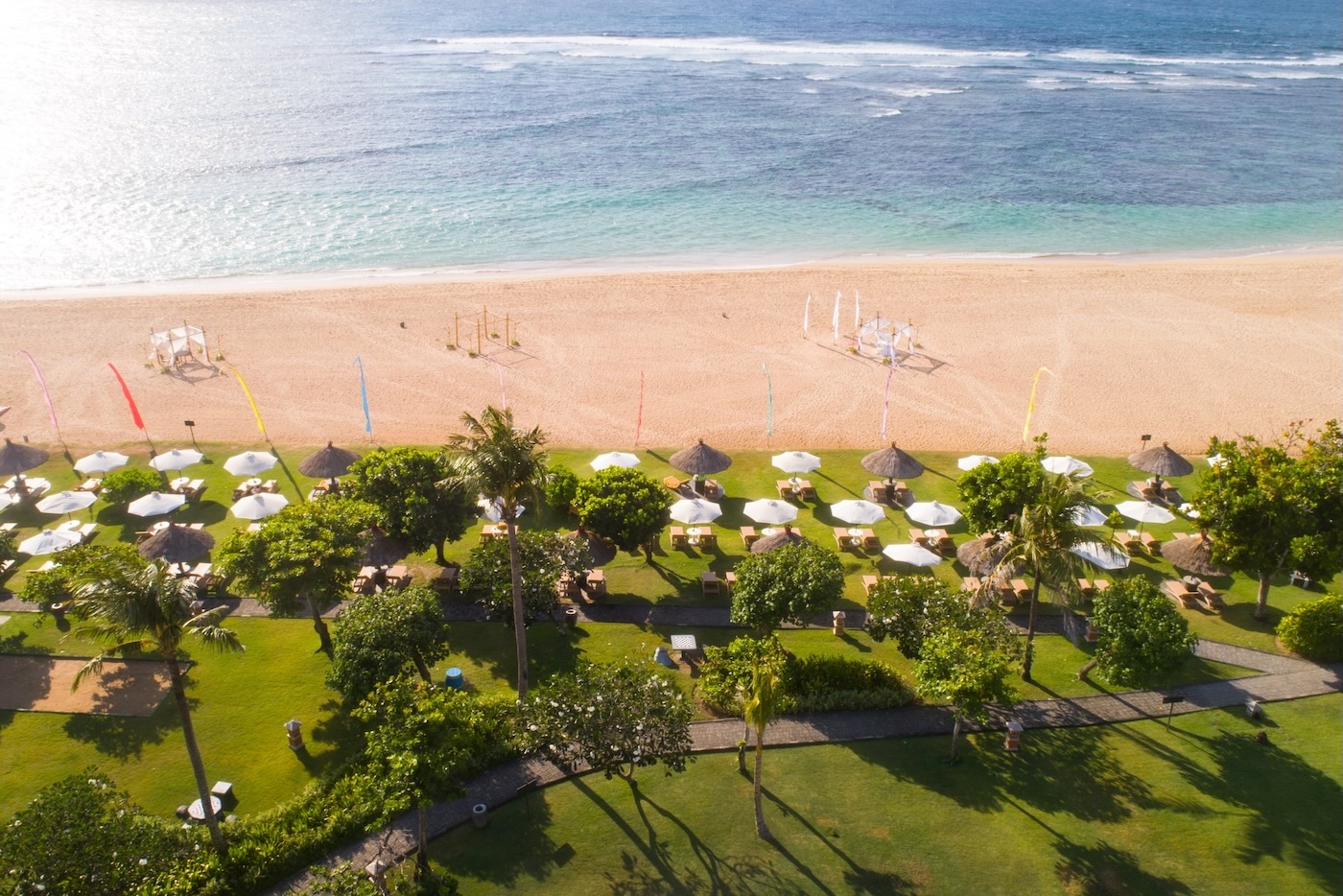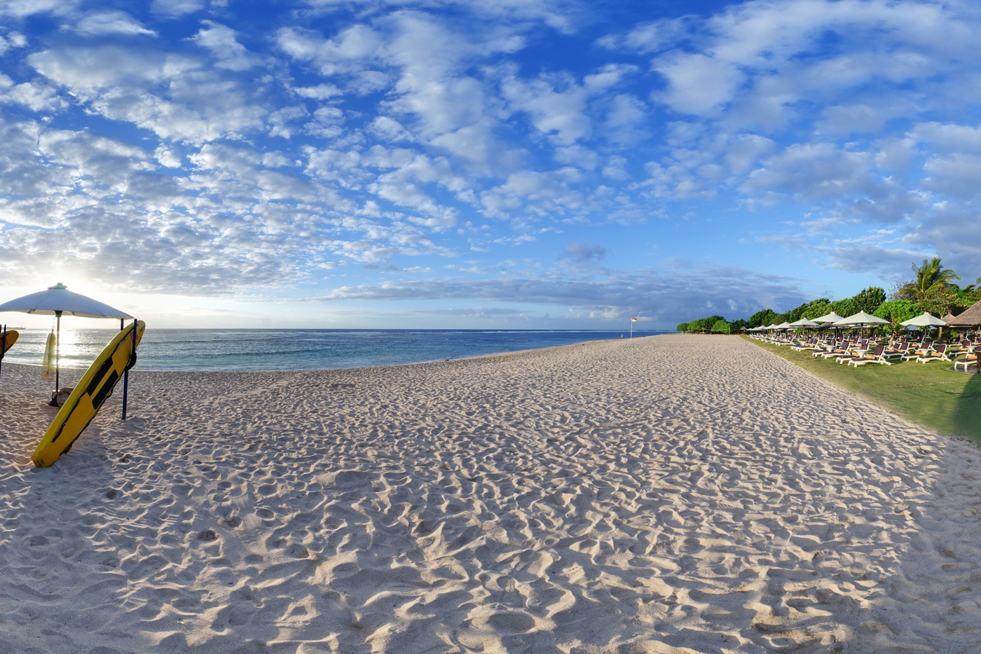 ヌサドゥアのいいところは、ビーチにはホテルの宿泊者のみなところ。(完全なプライベートビーチではありませんが、クタやスミニャックのような観光客や地元の人で賑わうビーチではありません) このどこまでも続く砂浜に穏やかな海、がまさにヌサドゥアで南国リゾートを実感出来るところ。