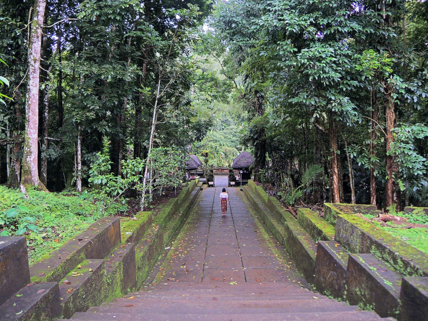 バトゥカル山に包まれるように建つ境内は静寂で神聖な空気が流れる寺院。