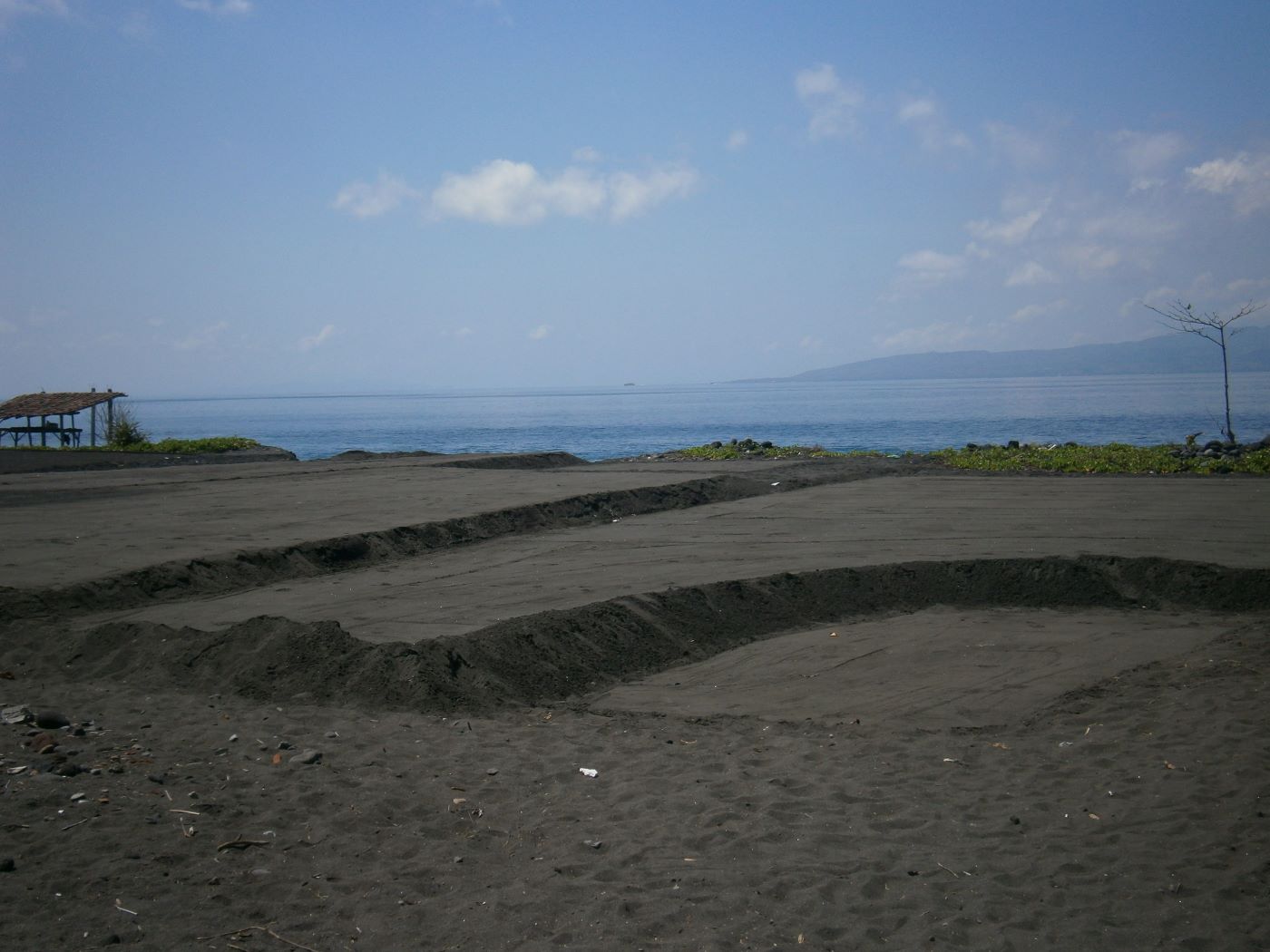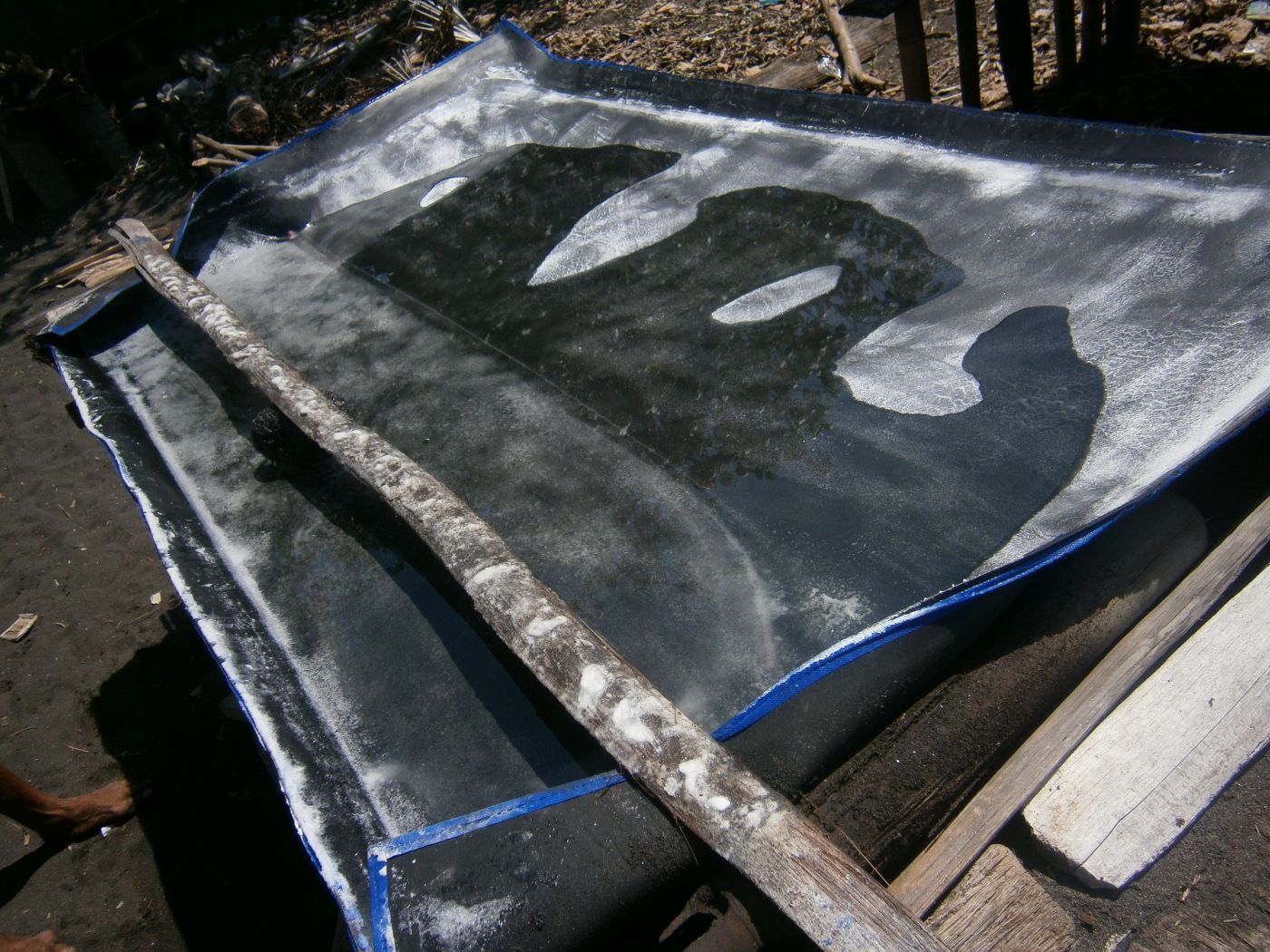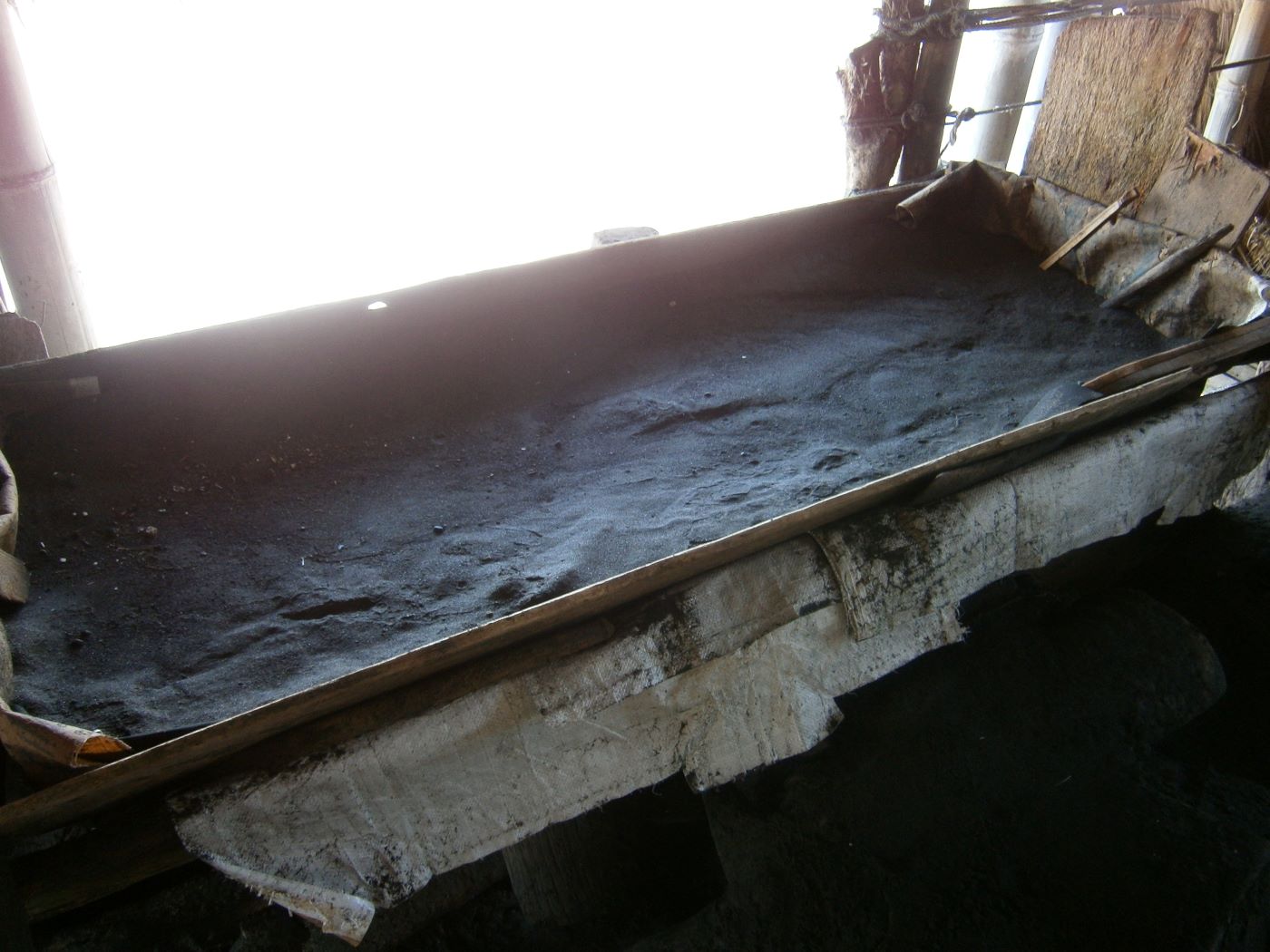 黒砂の熱い海岸沿いにはお塩をつくる小屋。