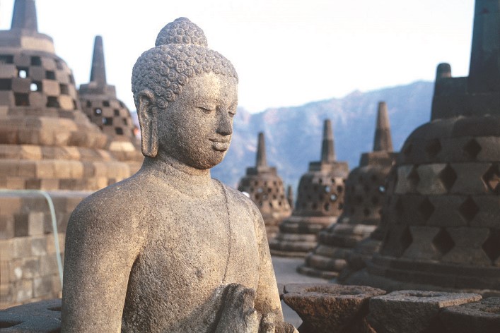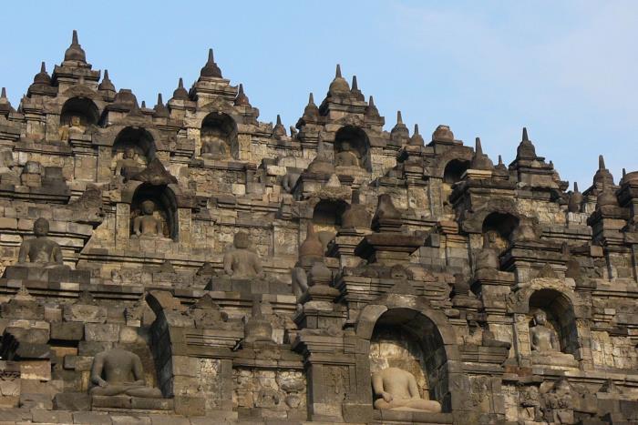ボロブドゥールは世界最大級の仏教遺跡です。8世紀から9世紀の半ばに仏教を辛抱するシャイレーンドラ王朝が建立したとされる説がありますが確証はありません。約千年もの間火山灰と密林の中に埋もれていたボロブドゥールは、イギリス占領下の1814年スタンフォードに発見されました。