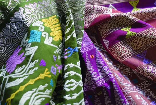 お部屋はベッドルーム、バスルーム、リビングエリア、プール、で構成されます。バリ島東部の伝統工芸“ソンケット”の布が置かれ…ベッドを彩ります。約4か月かけて職人さんが織るブルガリのオリジナルの模様なのだそうです。本当に美しい布です。