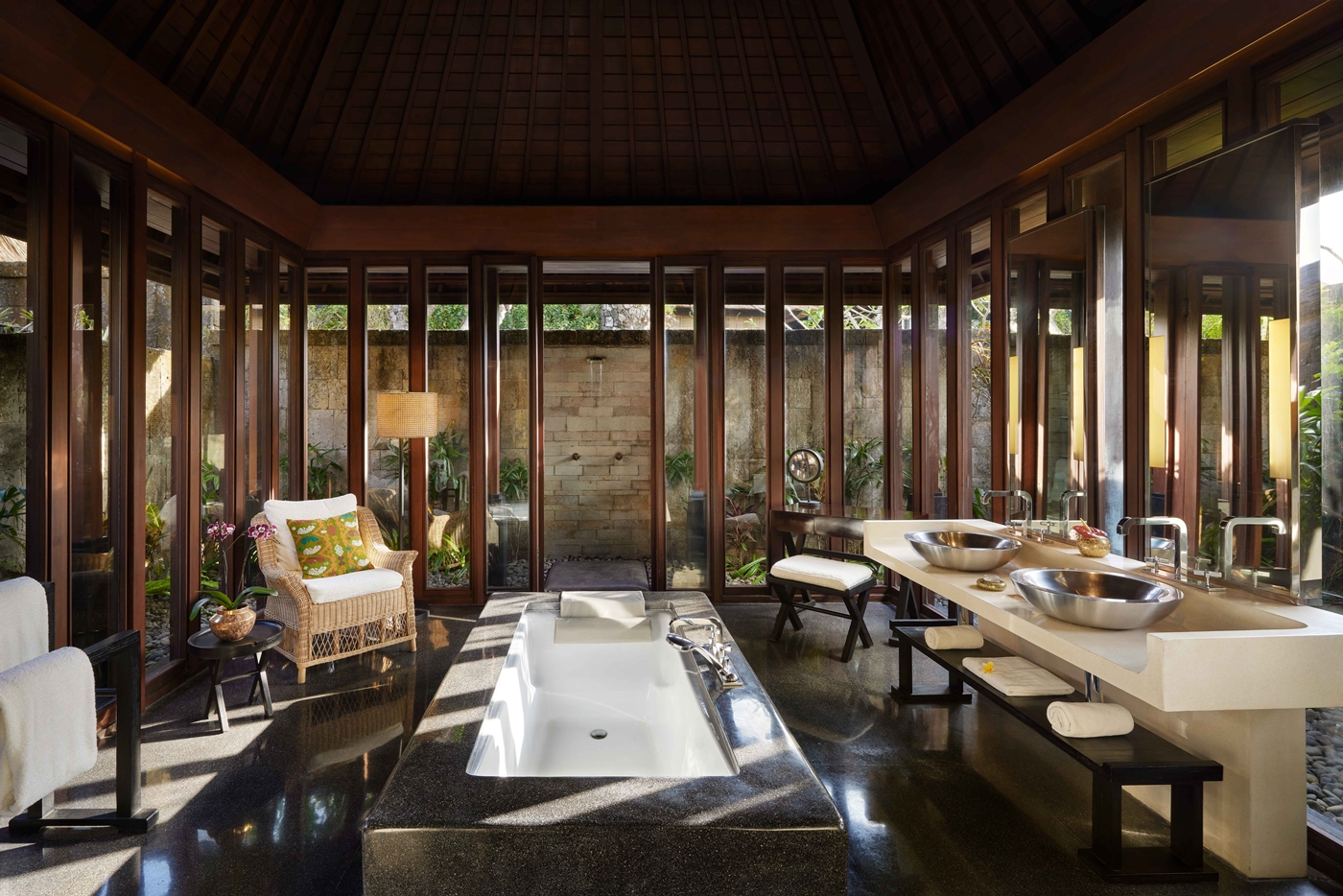 ブルガリの豪華なベッドに加え、各部屋にはリビングエリア、テラス、大きなウォークインクローゼット、バスタブ付きの贅沢なバスルームが備わっています。バリ島随一の客室、まさに豪邸です。