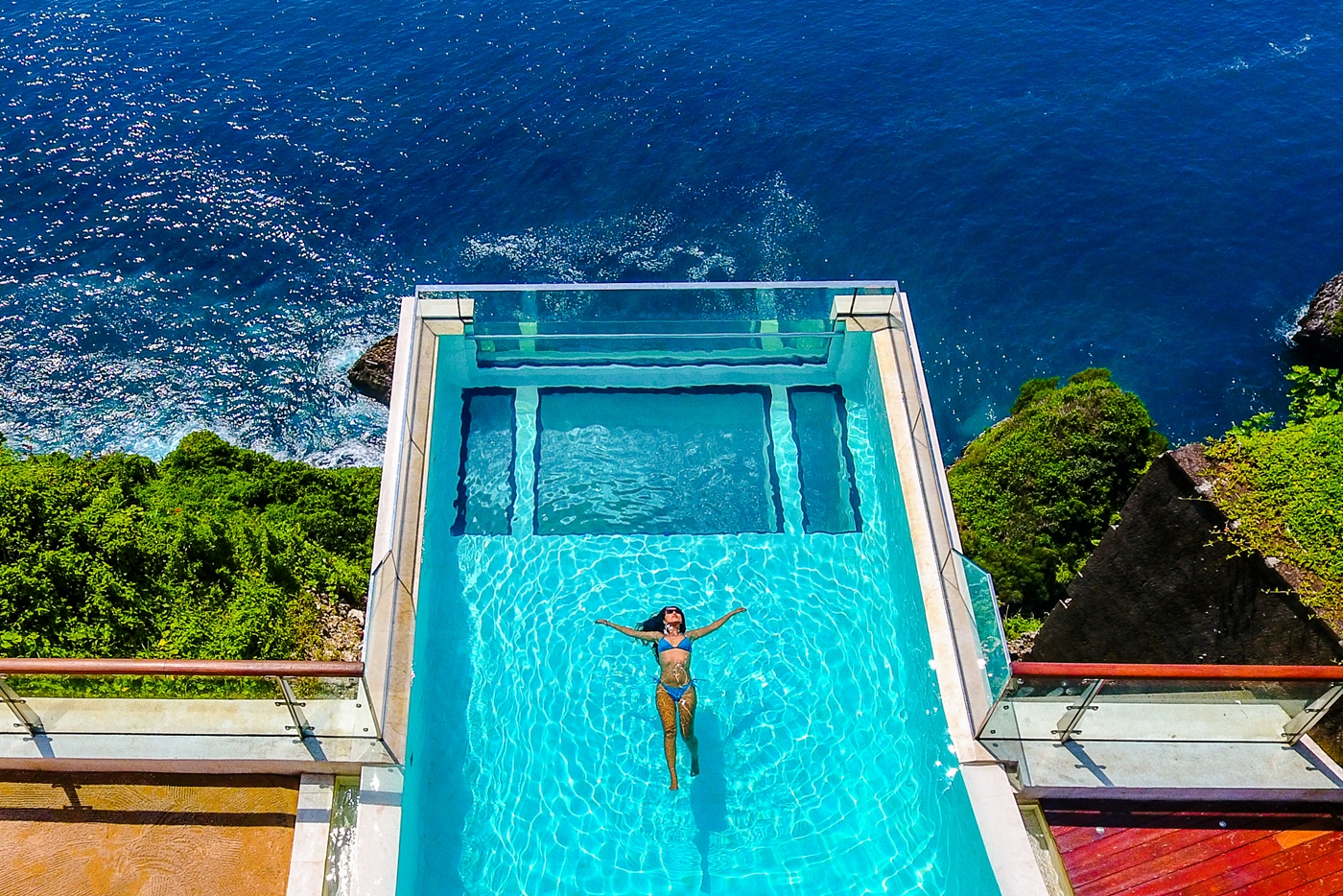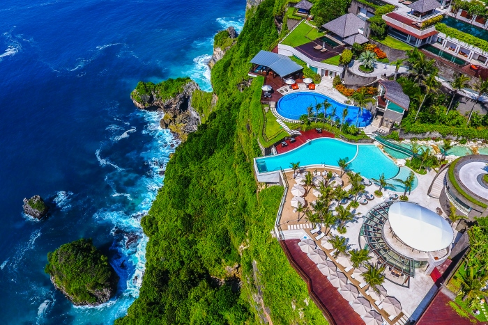 ジ・エッジは、インド洋を見降ろすウルワツの崖の上に位置するラグジュアリーヴィラリゾート。ダイナミックな地形に合わせたその建築デザインがより一層海の絶景を作り出しています。