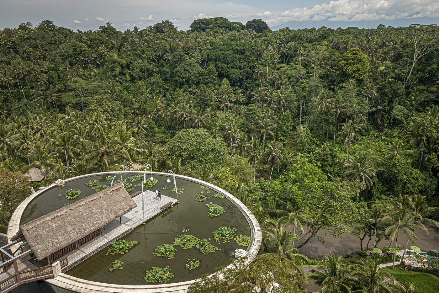 熱帯雨林の海に浮かぶような蓮のポンド。ここからフォーシーズンの非日常の空間へと入っていくことになります。