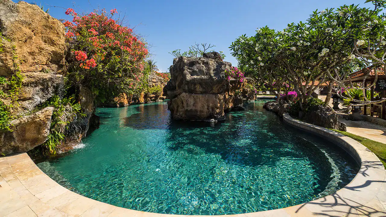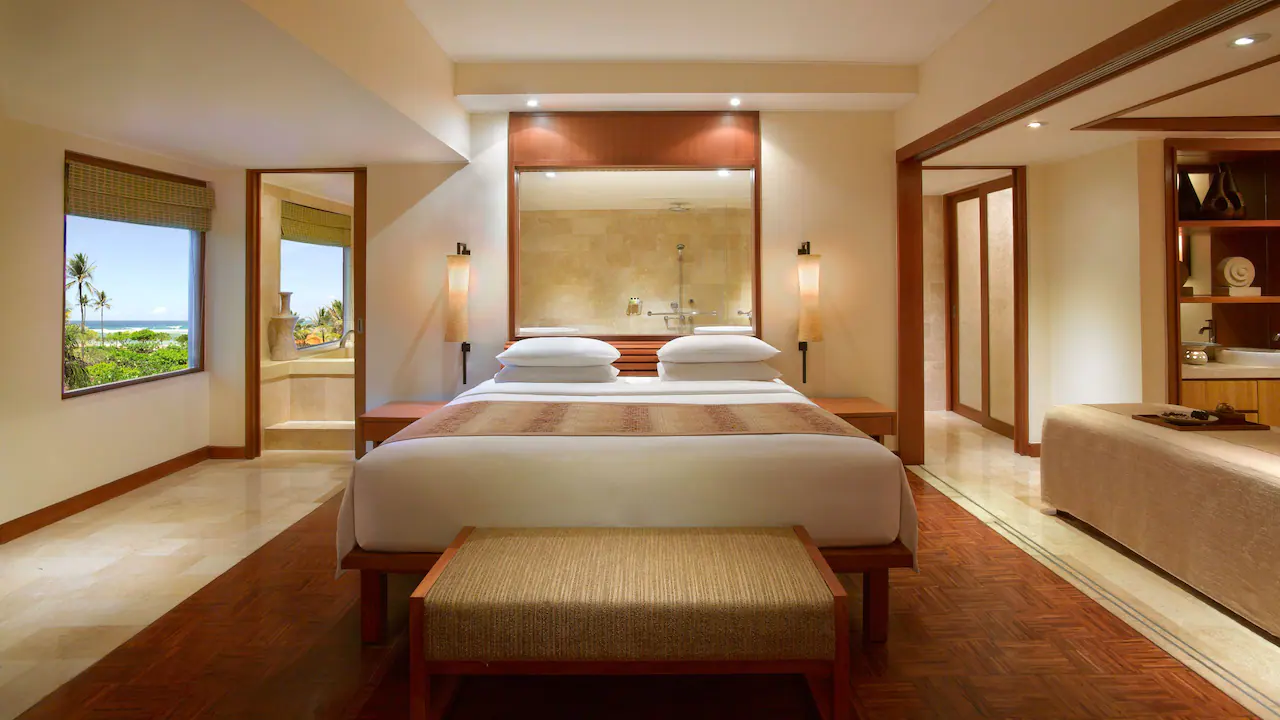 お部屋でもゆったりと滞在出来て、いくつも楽しめるプールに、目の前は海。数あるレストラン、その他ジムやヨガのプログラム等ホテルのアクティビティーも充実。どこにいっても潮風に包まれ鮮やかな南の島の緑と花々が電磁波や疲労で一杯だった日常から心と体を解放してくれる。思い思いに過ごす世界中から来た楽しそうな人たちがたくさんいて。。。バリに来た、って実感できるバリらしいリゾートホテルです。ファミリーに強くおすすめしていましたが、ホテル内で完結出来るので、初めてバリに訪れる方、シニアには勿論、カップル、学生さん、女子旅にも、どんなご旅行にもお勧めできる万能ホテルです。