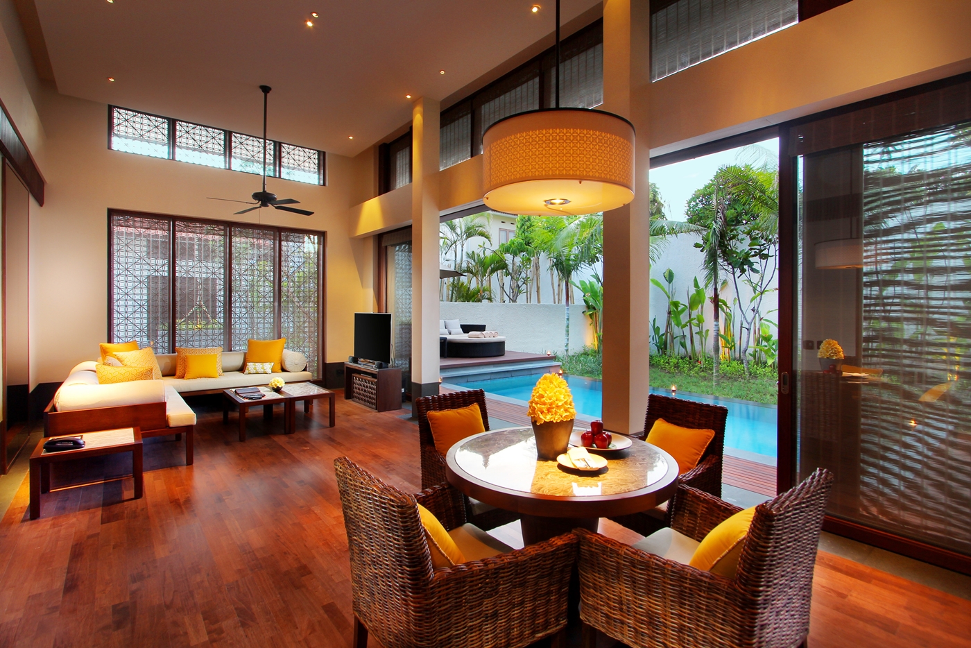 広々とした屋外のダイニング、ソファエリアが特徴です。ベッドルーム、バスルーム、リビングエリア、さらに全てがゆったりとリラクゼーションに快適な造りでご滞在をお楽しみいただけます。そしてスパ専用のスペースでプライベートにトリートメントで癒されて頂けます。トロピカルな美しい庭園を臨むガーデンビュー、またはインド洋の青い海を臨むオーシャンビューの景観をお選び頂けます。