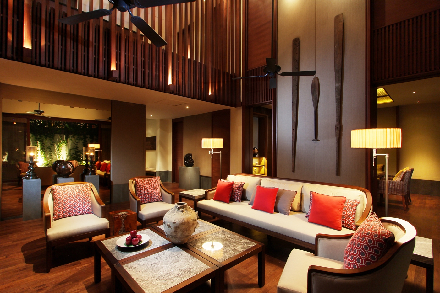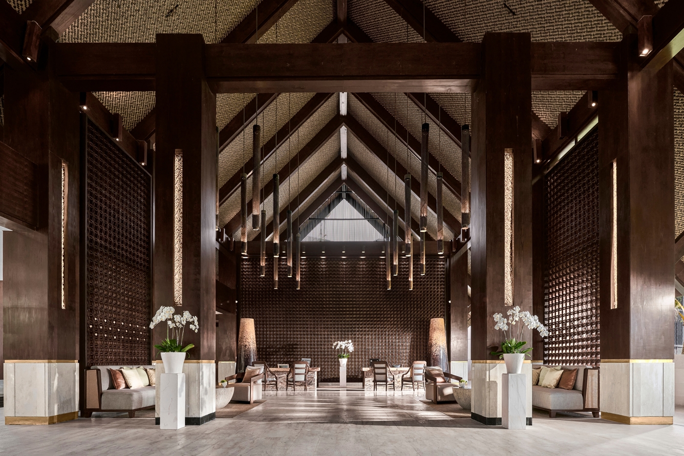 モチーフとなっているバテイック模様の壁や薫り高い純白の蘭の花