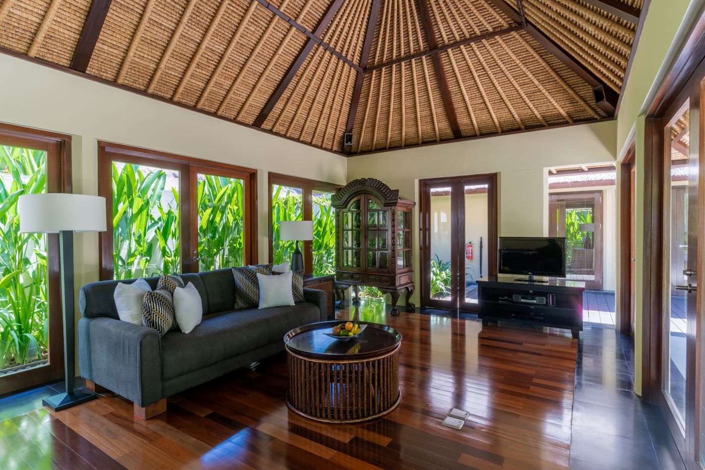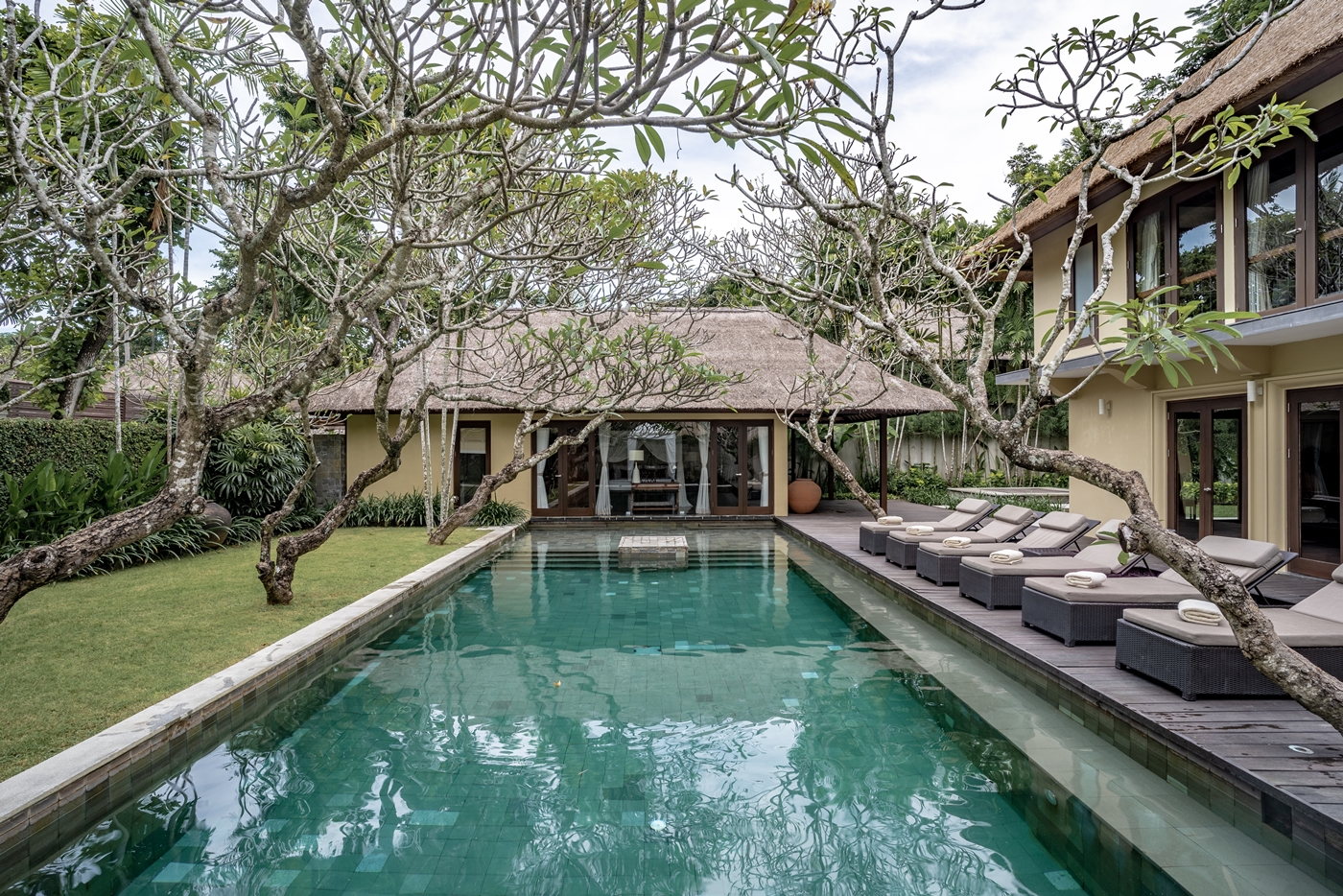 カユマニス ヌサドゥアは、高級リゾートエリアとして美しく整備されているヌサドゥアにあり、豊かな自然に包まれたビーチにもほど近いヴィラです。バリ島らしい伝統的な茅葺屋根や木材を贅沢に使ったヴィラには現代の快適な設備と共にインドネシア各地のナチュラルな家具を配し、ヴィラとヴィラは壁で仕切られているのでリラックスしてプライベートで豊かな時間をお過ごしいただけるつくりになっています。各ヴィラにはインドネシア固有種の木の名前を付け、インテリアもインドネシアの地域をテーマにした家具や布、装飾品を使い、インドネシアの街を訪れたような気分を感じることが出来ます。