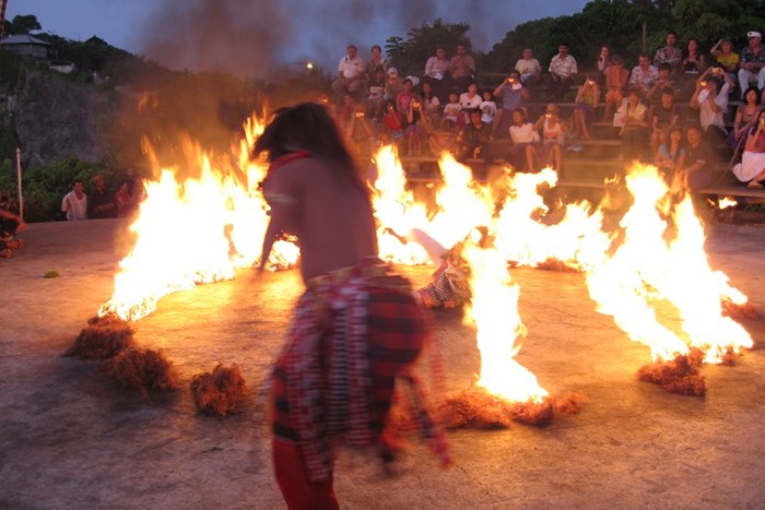 劇場の中央で燃えるたいまつの炎が、バリ島のケチャックダンスを照らし出し、実にエキゾチックな雰囲気。すっかり日が暮れたラストは、ファイヤーダンスで一気に盛り上がります。
