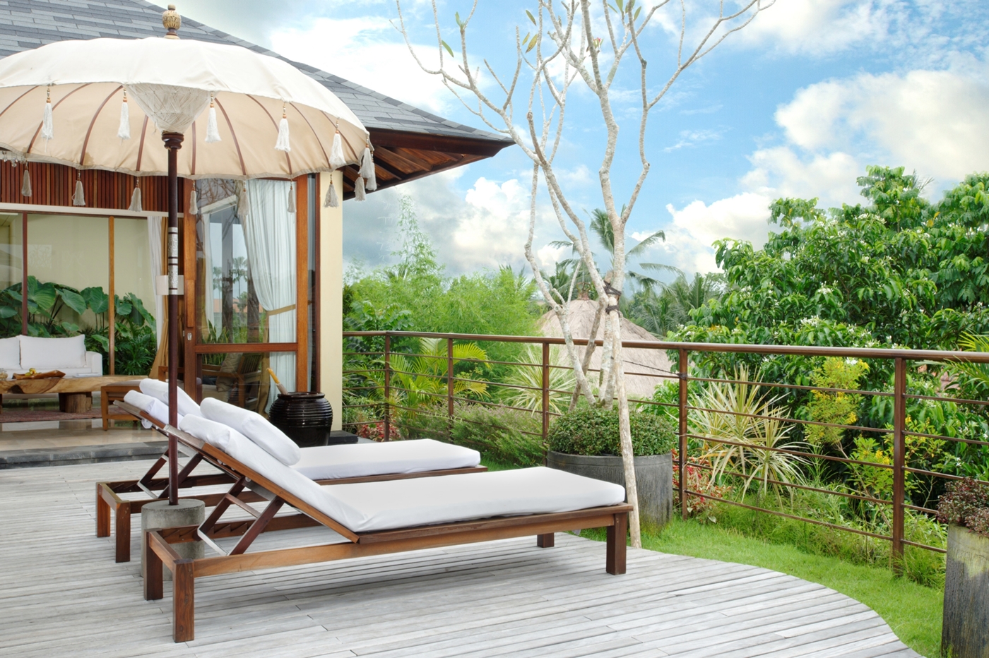 広いバルコニー、テラスでくつろぎ、熱帯雨林の木々に包まれウブドの空気を感じながら深呼吸しましょう。