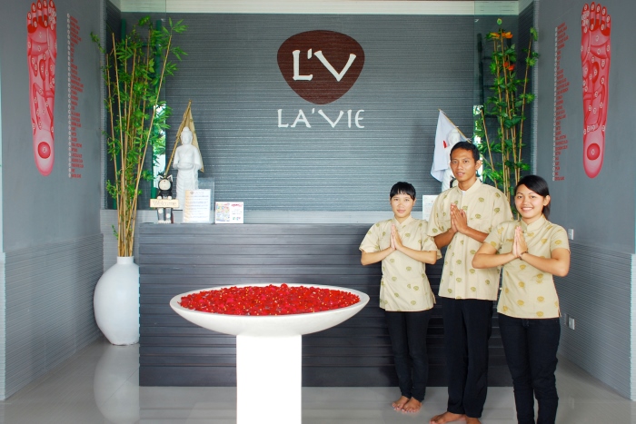 今日は、あまり時間はとれないけど疲れた体をほぐしてスッキリしたい!! という方に断然おすすめしている、ラヴィ(LA’VIE)をご紹介します。私たち旅行会社のスタッフは、日本からの弾丸ツアーや出張のお客様のアテンドをすることも多々あるのですが、ハードのスケジュールの終わり、帰国前の少し空いた時間に行けるところ…でラヴィをご紹介しています。ジンバランにあるので空港にもほど近く夕食~ラヴィ~深夜フライトで日本に帰国、という流れ。ラヴィは、マッサージではオイルを使用していないので、勿論ショッピング・観光の合間などにも気軽にご利用頂けます。