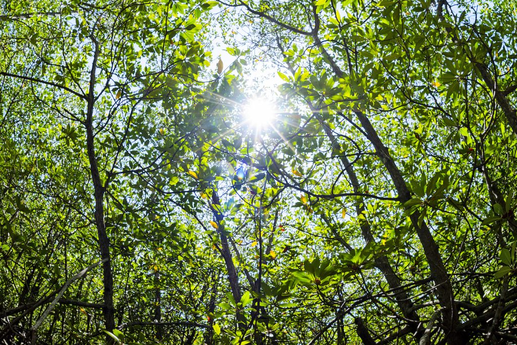 マングローブは、熱帯・亜熱帯の沿岸域の潮間帯、とりわけ海水と淡水が入り交じる汽水域に生育する植物群の総称です。またマングローブの根元は、カニなど生物の隠れ家。鳥類や小魚などの生物も集まってきます。