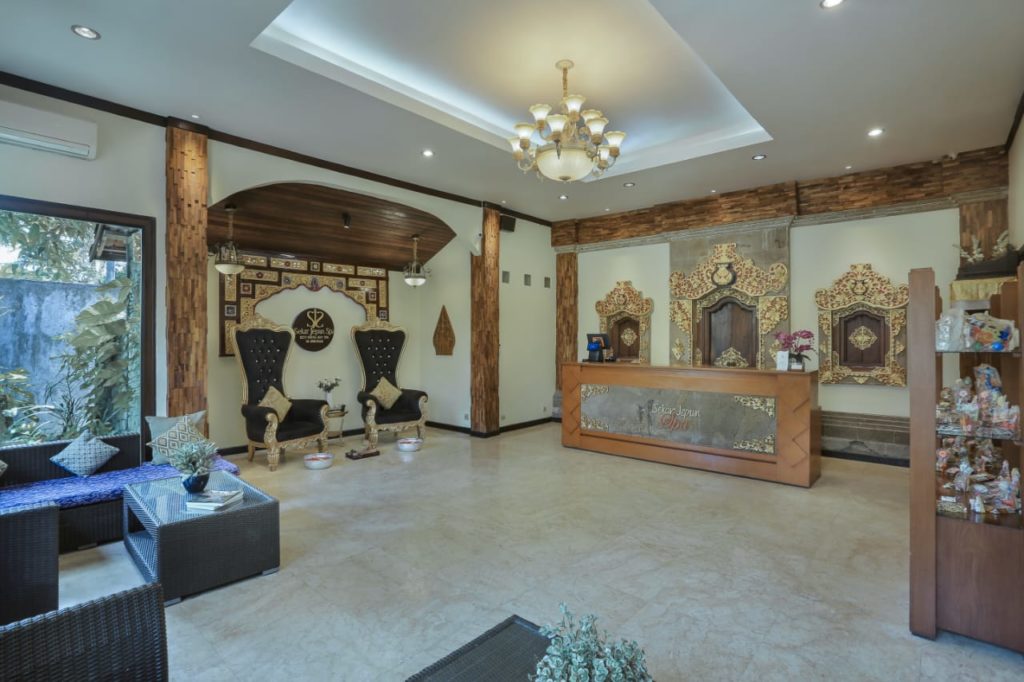 スパロビーでは、温かみのあるバリらしい雰囲気でお出迎えしてくれます。
