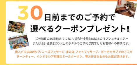 オプショナルツアー / 食べる / スパ 2026年1月12日 マイマイウェブでお得に旅しよう、30日前までの早期予約特典!選べるクーポン プレゼント! 皆さん、こんにちは。マイマイウェブでは、30日前までにオプショナルツアー、または ホテルのご予約を完了されたお. . .