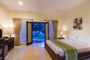 ファミリーリゾートをコンセプトにしているので、ダブル、トリプル、クアドルプルルームもありファミリーやグループにもご利用しやすいお部屋タイプがあります。豊かな島の自然、椰子の木が青い空に向かって伸びる広々としたホテルの敷地でリラックスしてホテルライフをお楽しみ下さい。