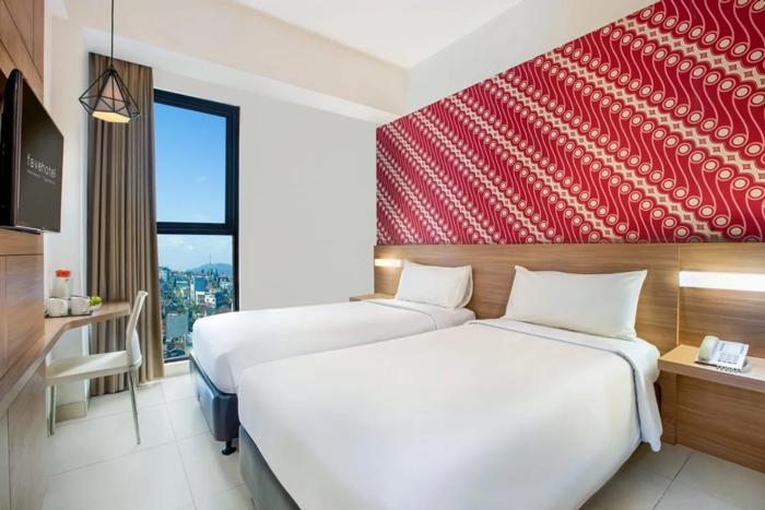 ジョグジャカルタのマリオボロ通り、ベリンハルジョ伝統市場、ガレリアモールから徒歩圏内にあるお手軽価格のフェイブ ホテル マリオボロ ジョグジャカルタ。空港からは約7km、観光スポットへのアクセスも便利なエコノミーホテルです。