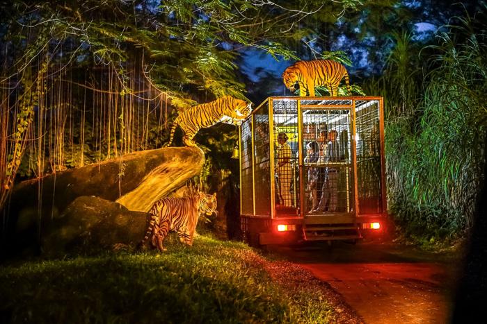 園内を散策した後は、ナイト サファリジャーニーへ。専用の車に乗車し、パーク内のジャングルに出発します。