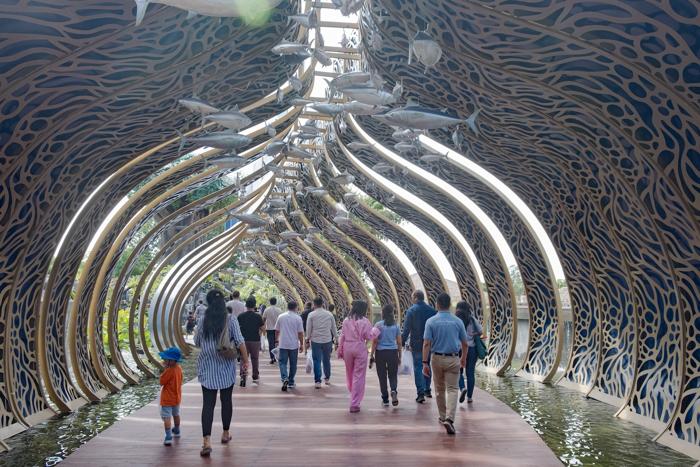 古代アステカ文明をイメージした緑豊かなエリアを散策しよう。