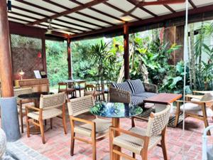 ウブドのサヤン地区にある、森に囲まれた朝食からディナーまで楽しめる創作料理のレストラン。