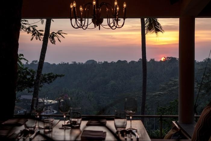 ウブドの森の景色の中で頂く楽しい創作料理のレストラン。