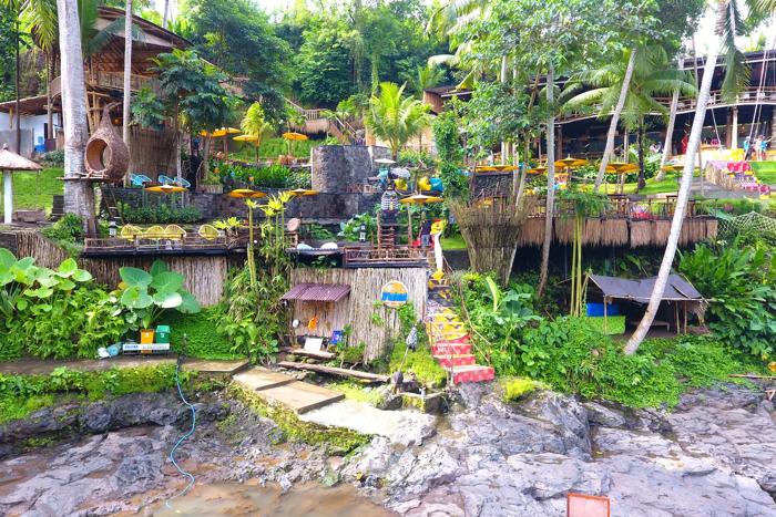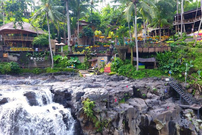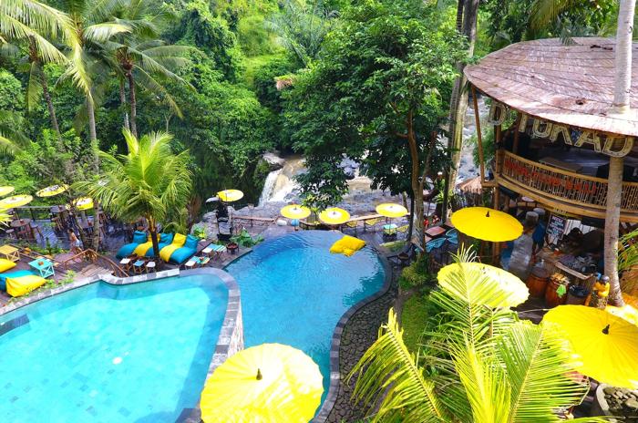 バリ島、ギャニアールのブランシンガにある、ディー トゥカッド(D Tukad)は、トゥグヌンガン滝やライステラスの景色を眺めることができるリバークラブです。